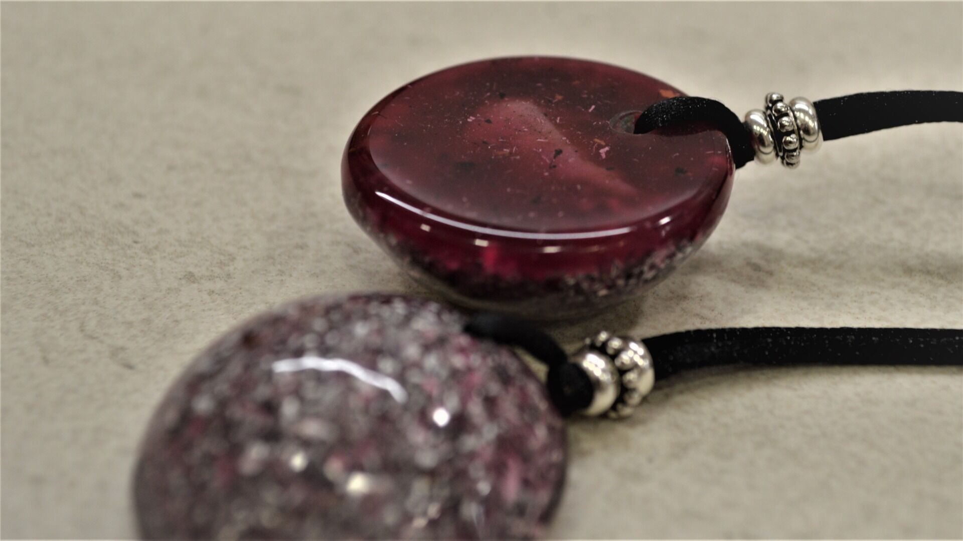 This pendant orgonite model is a classic model, its composition is polyester resin with metal shavings (aluminum), in a 50% proportion, and a quartz inside. Red color.