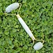 Masajeador facial de Jade, consta de 2 rodillos, para utilizar este masajeador facial de Jade, se necesita aplicar un sérum, vitamina C, ácido hialurónico o un aceite facial y deslizar el rodillo de forma ascendente por la zona de la frente, de las mejillas, y en el cuello y escote,con movimientos ascendentes desde el pecho hasta la barbilla o el cuello, nunca tirar de la barbilla hacia abajo, potenciaremos la flacidez y sobretodo con la cara y el rodillo limpios.